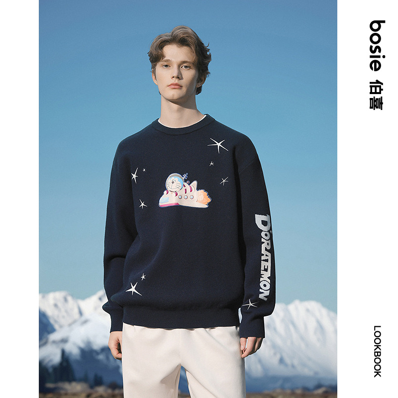 海澜之家休闲长袖 圆领套头时尚 针织衫 新款 蓬松毛衣男 2025秋季 HLA