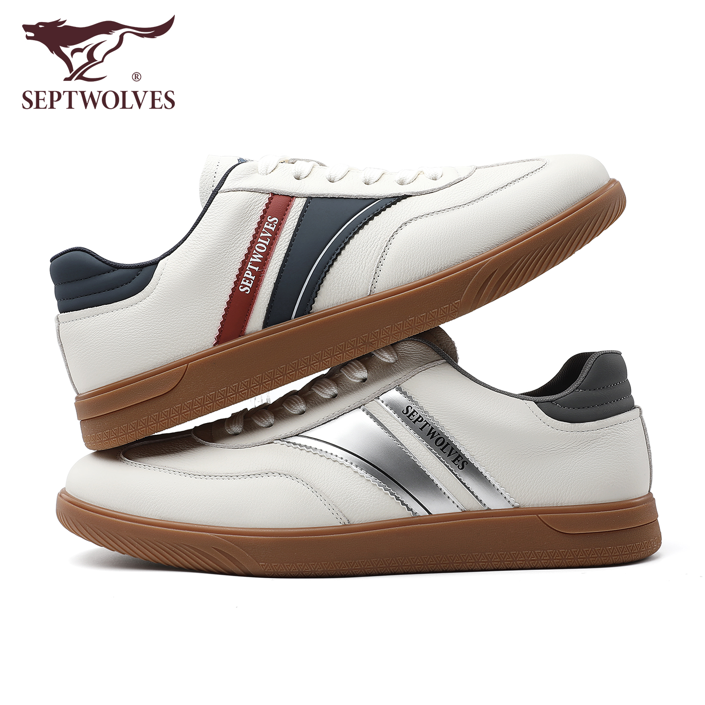 男款 轻便白色休闲鞋 真皮运动板鞋 秋天男鞋 子 2025新款 七匹狼德训鞋