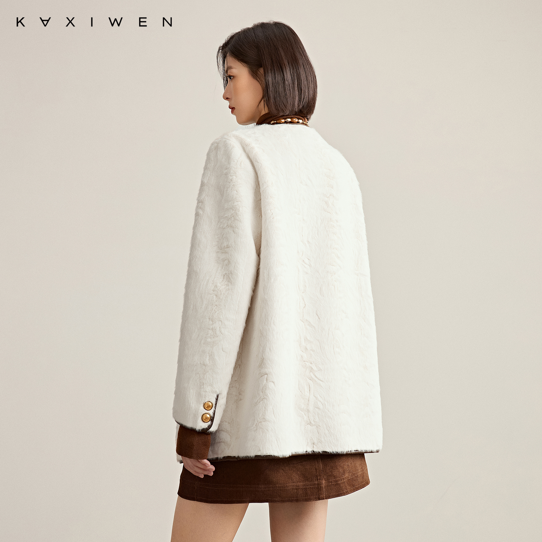 饰保暖上衣 肌理感立体装 佧茜文撞色环保皮草外套2025秋冬新款 时尚