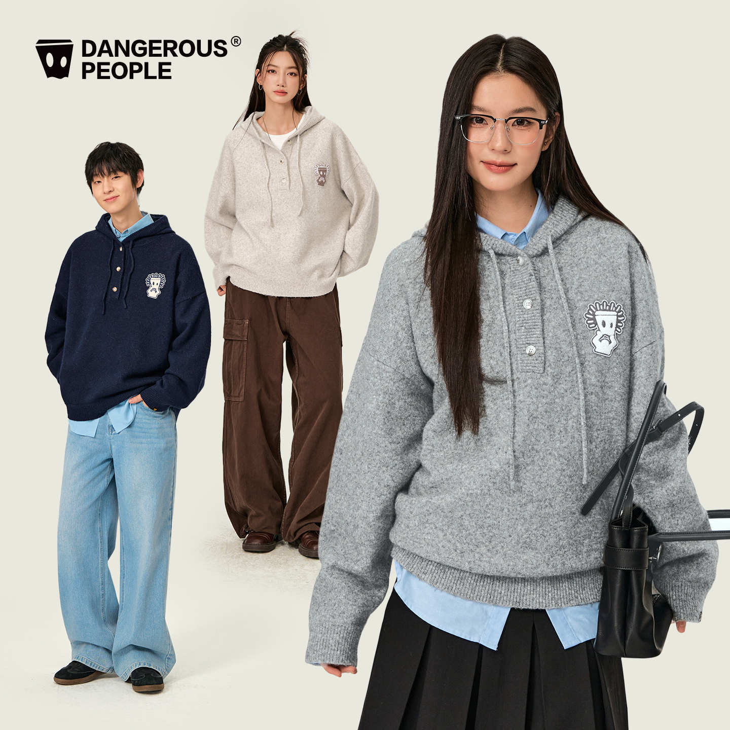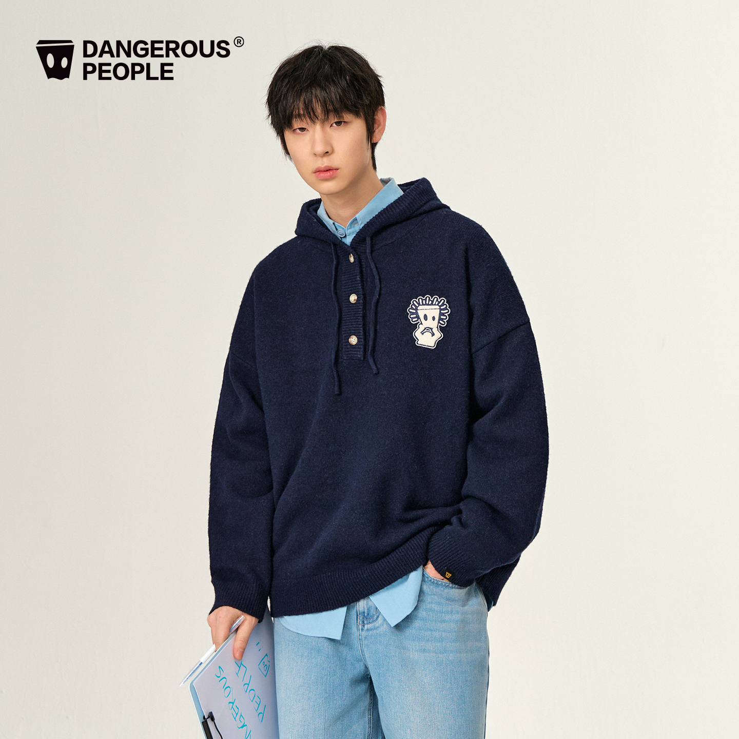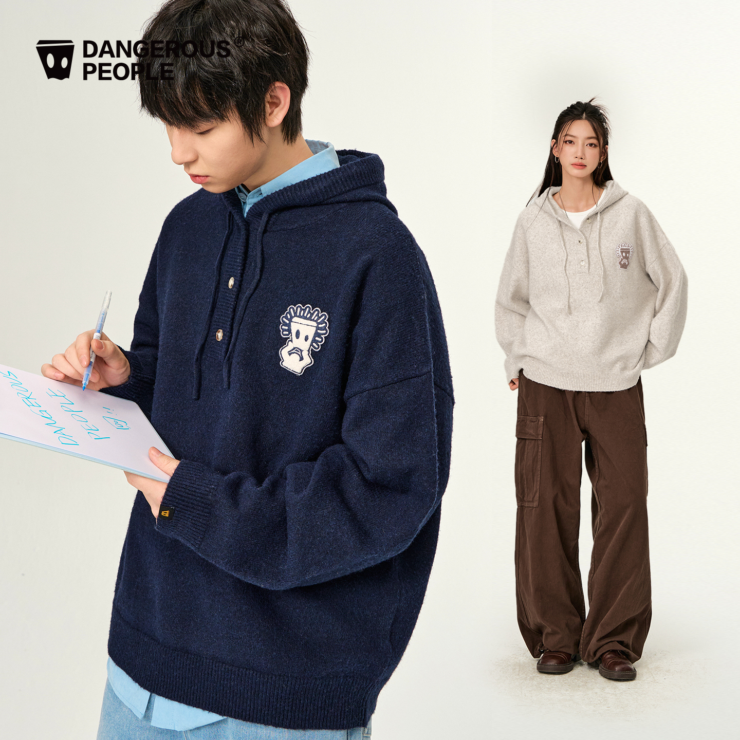 Dangerouspeople薛之谦dsp经典 纸袋头宽松百搭套头毛衣连帽针织衫
