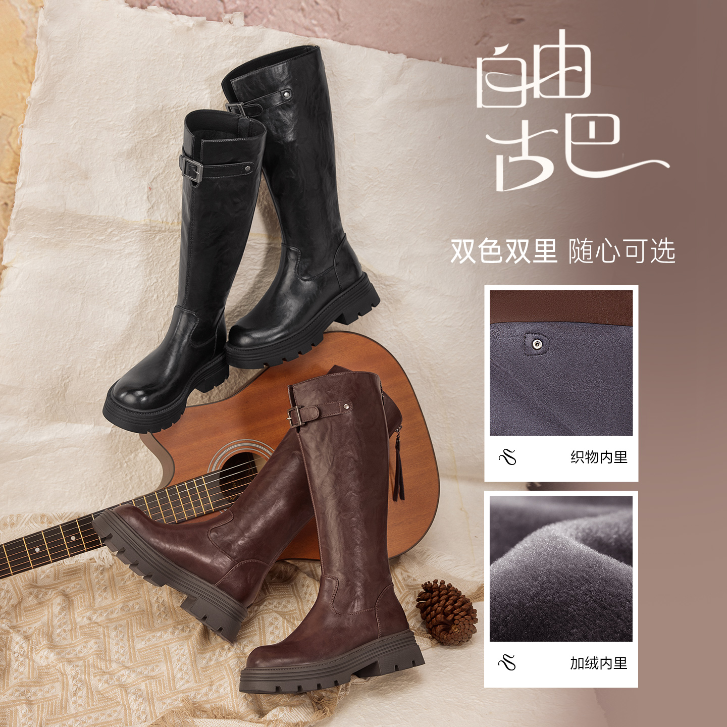 骑士靴街头潮流粗跟女长靴F2021DG5 商场同款 百思图2025冬季 新款