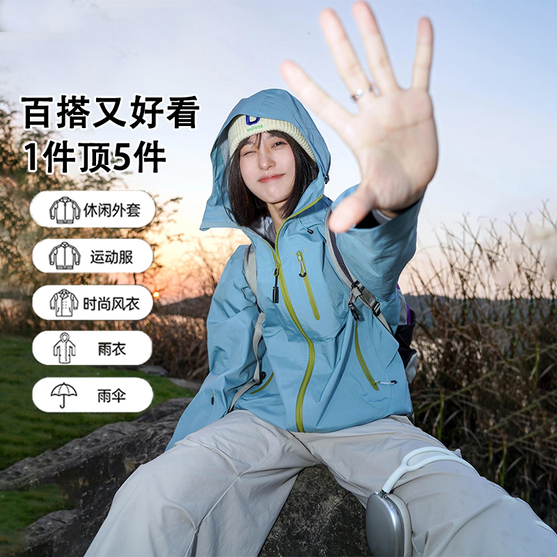 骆驼户外紫玫红冲锋衣女防水外套男三合一两件套登山服 双11预售