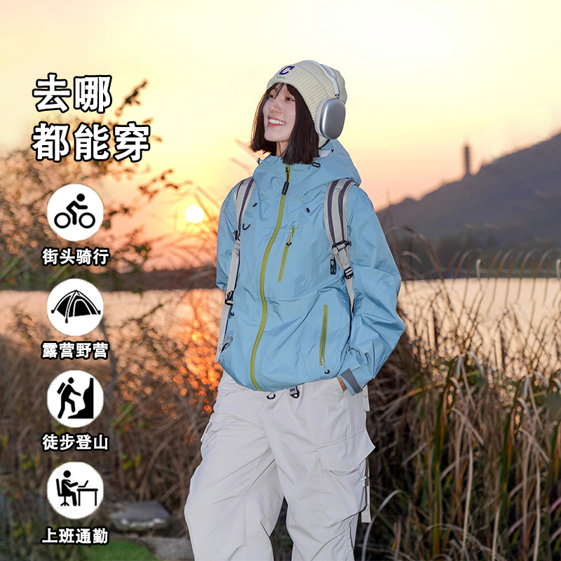 骆驼3514系列冲锋衣女三合一户外登山服男防暴雨防风防水旅游外套