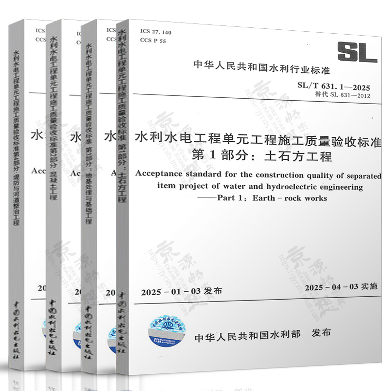 工程施工质量验收标准SL T631第1 地基处理 T223 堤防河道整治 混凝土 水利水电工程单元 土石方 水利水电建设工程验收规程SL 4部分