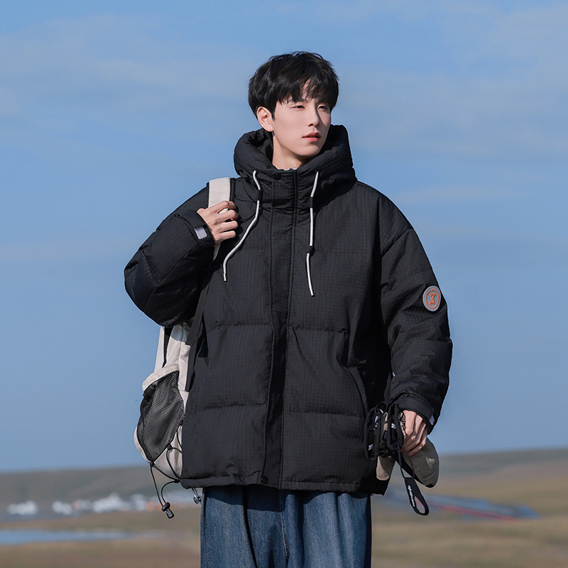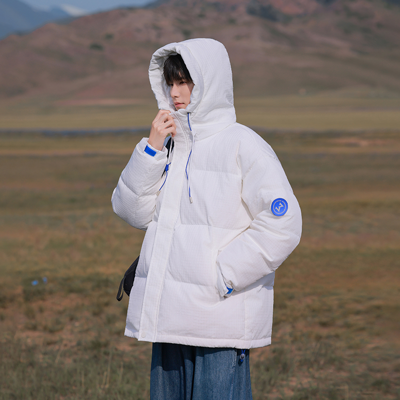 轻松羽绒森马羽绒服男2024冬新款 发热三防情侣连帽外套面包服防寒