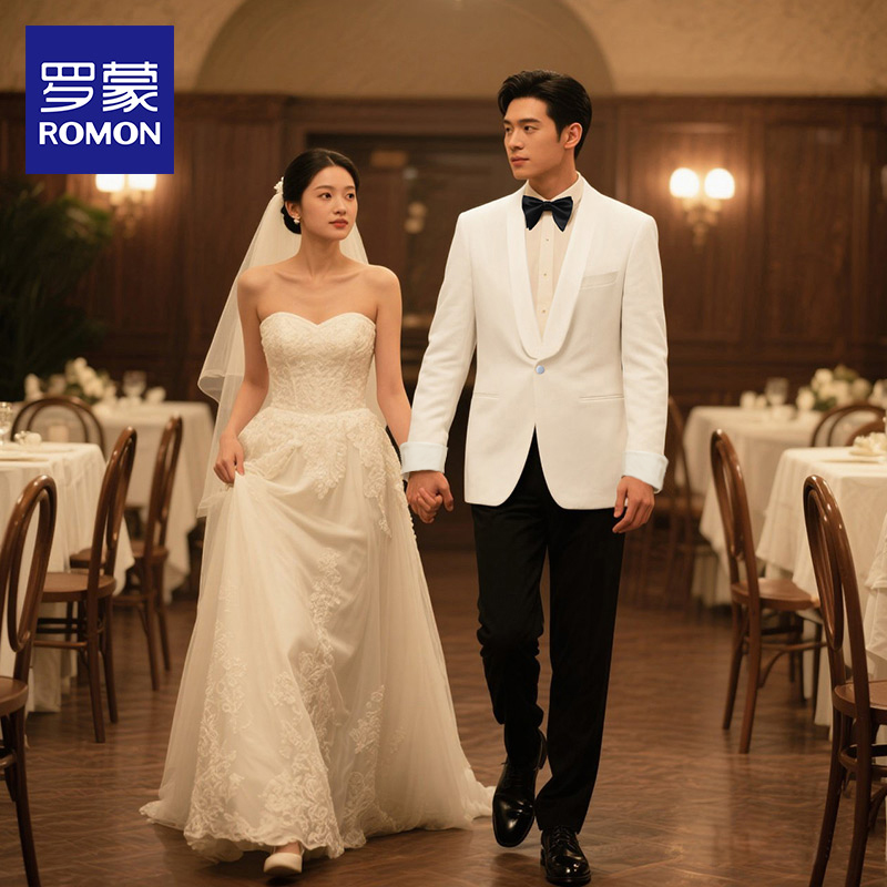 白色戗驳领西服男高级感成熟稳重男装 三件套搭配订婚穿搭礼服 西装