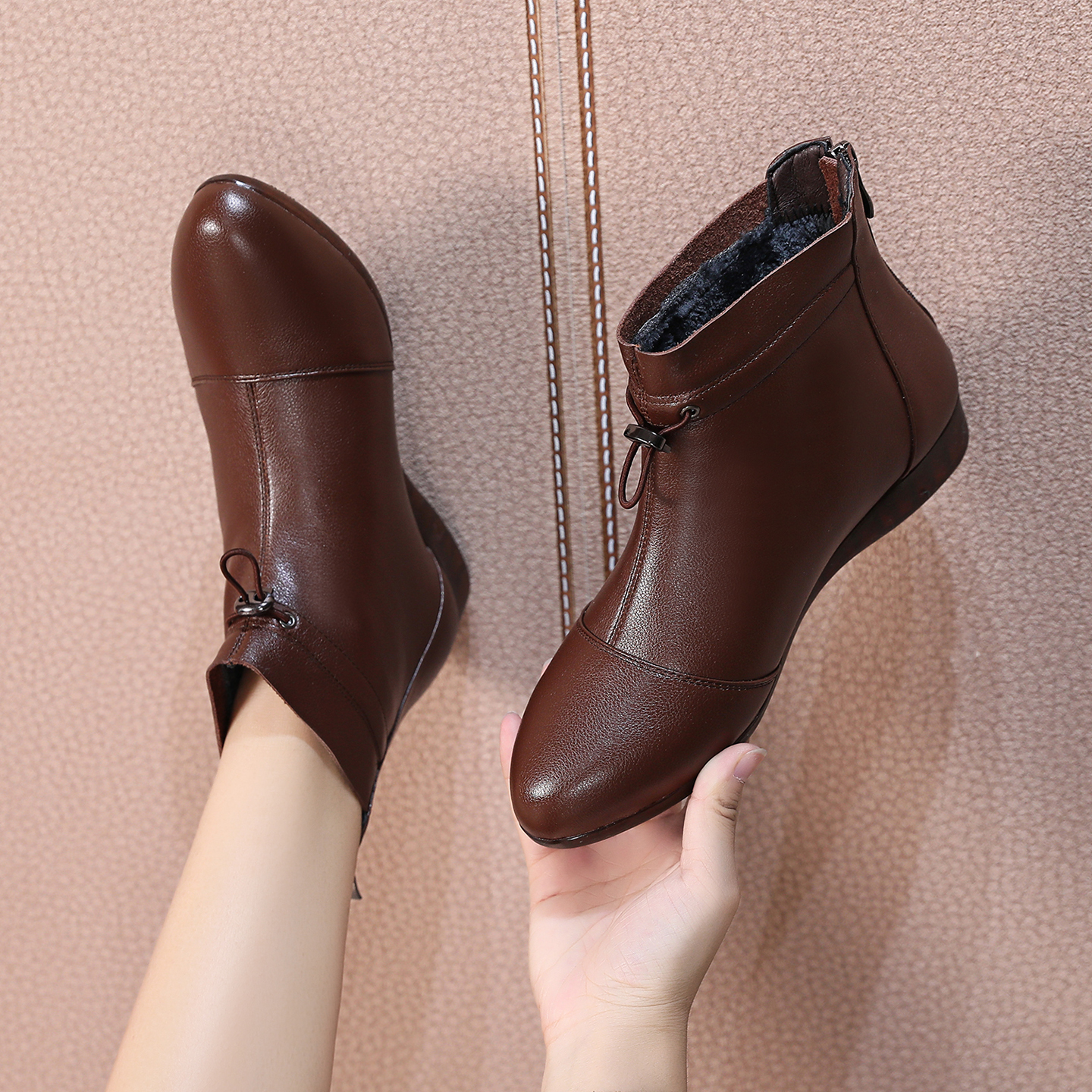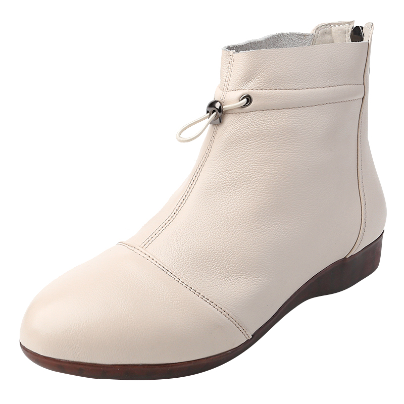 加绒棉鞋 真皮平底短靴女大码 妈妈鞋 41到43秋冬新款 春秋单靴子 女鞋