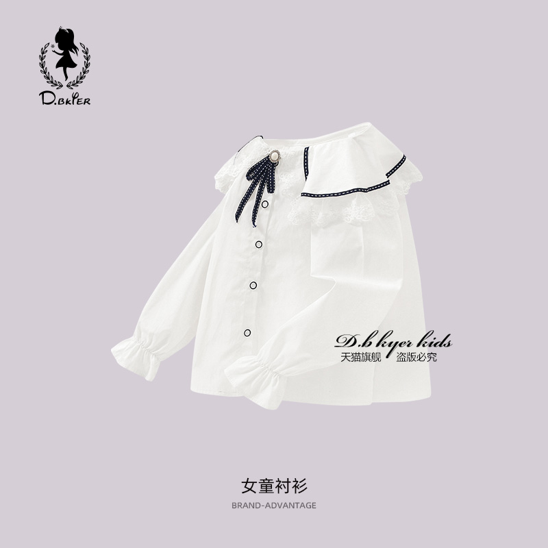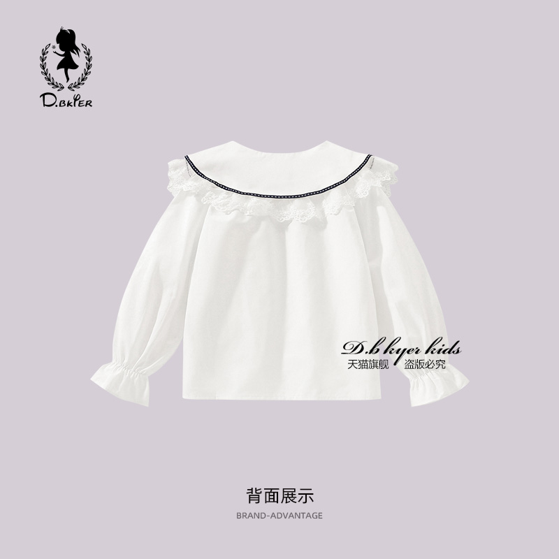 上衣 长袖 D.Bkyer女童白色衬衫 上衣儿童衬衣学生大童娃娃领校园款