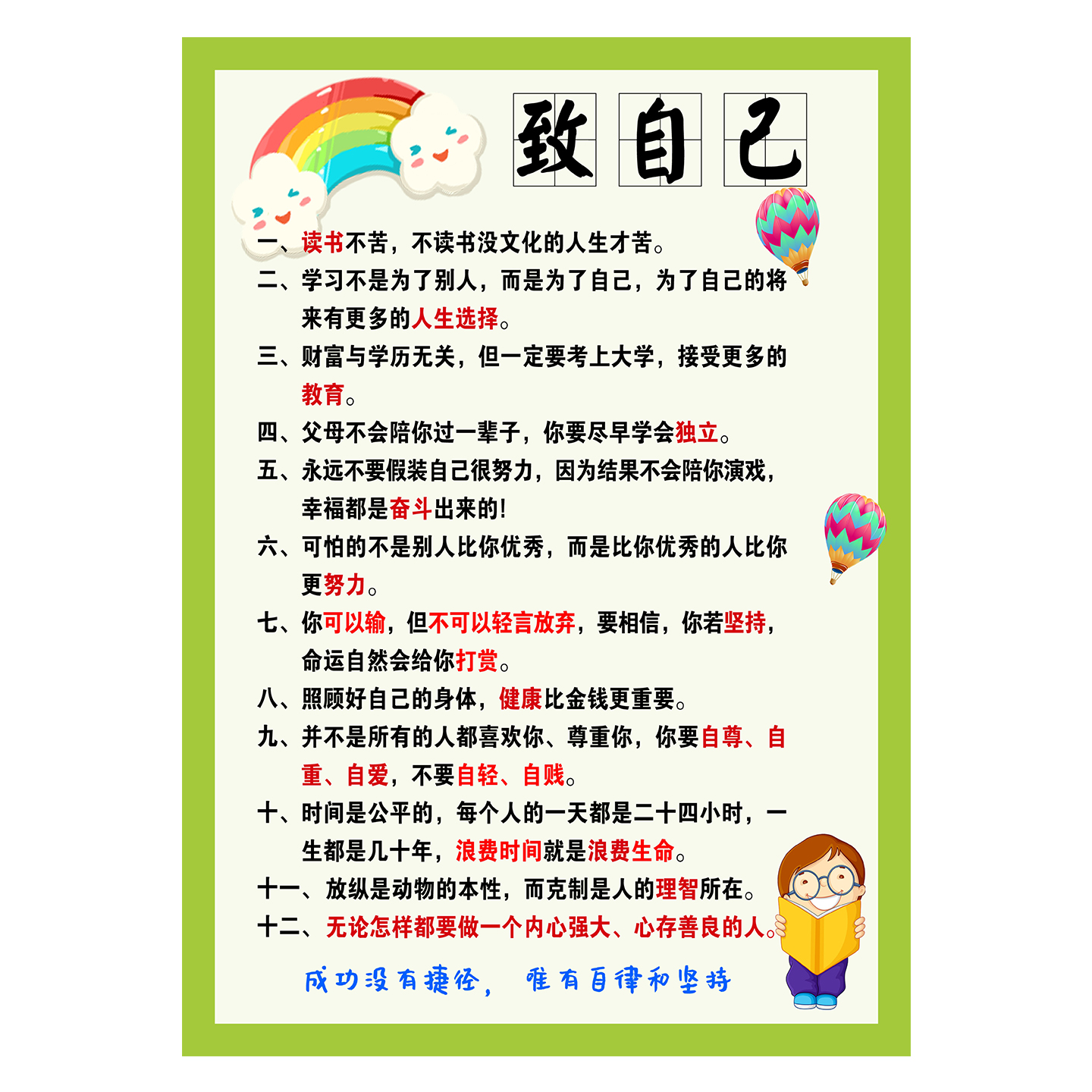 致宝贝父母寄语墙贴家规家训挂图男孩学习励志学生激励励志海报