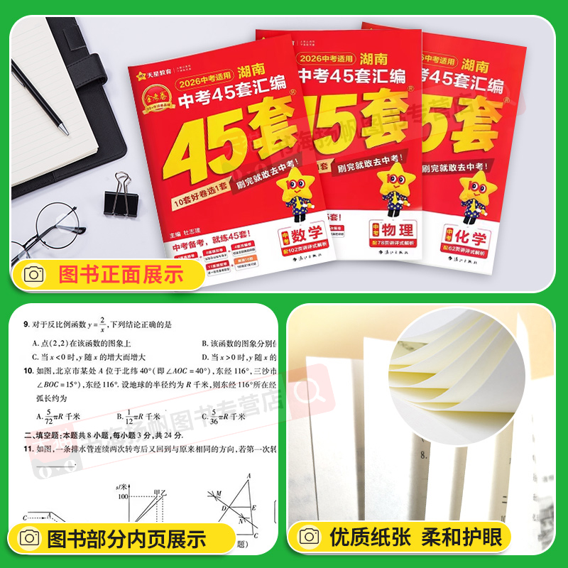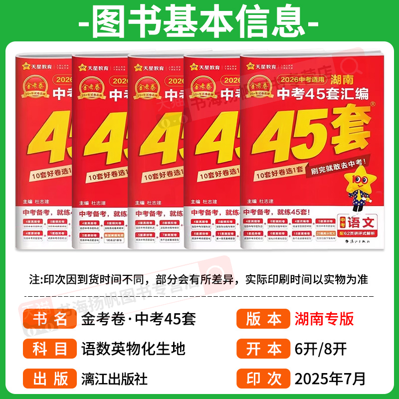 湖南专版 2026金考卷湖南中考45套汇编真题试卷全套总复习天星教育初中语文数学英语物理化学一轮复习学霸必刷题初三九年级模拟卷