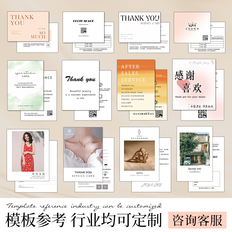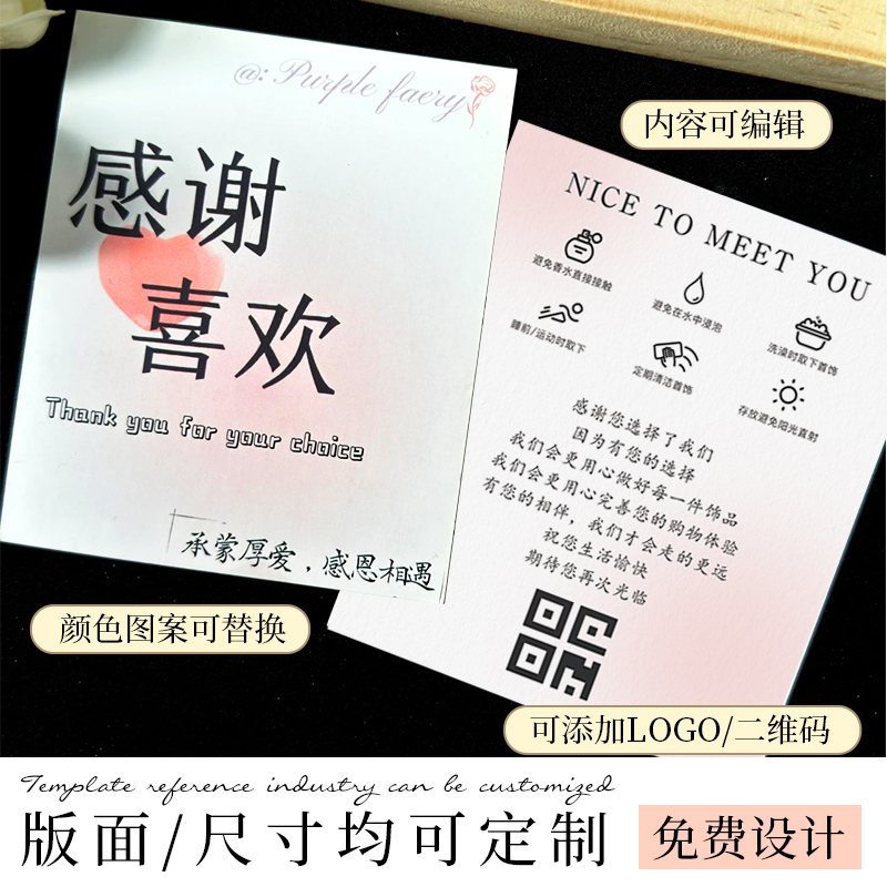 饰品卡片定制银首饰项链养护卡纸设计珠宝水晶手串产品保养硬小卡背品牌logo快递包装 感谢卡打印刷 广告二维码