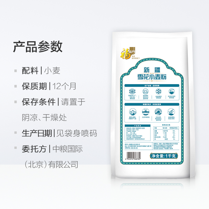 福临门新疆雪花小麦粉1kg中筋精制粉家用通用拉条子馒头饺子