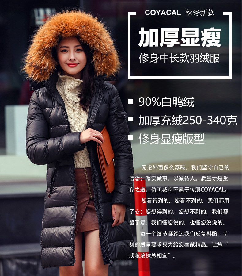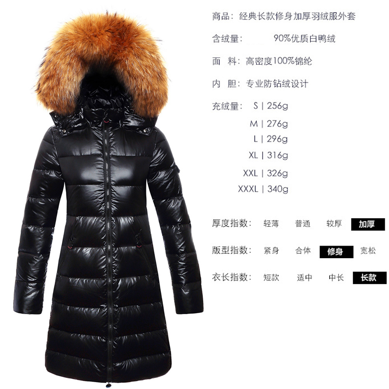 显瘦白鸭绒加大毛领羽绒服女中长款 充绒256 340克超厚加厚修身