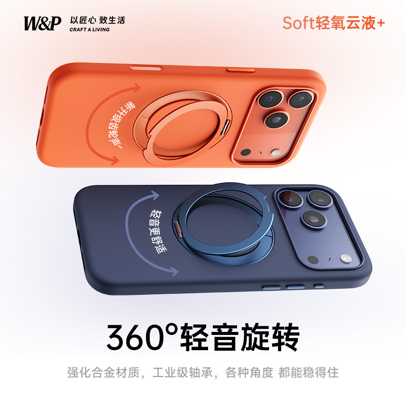 适用苹果17ProMax手机壳iPhone17Pro液态硅胶支架壳ip按键全包支点磁吸保护套防摔PM旋转超薄2025 W&P新款