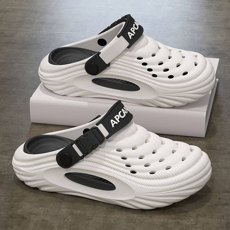 防滑厚底涉水大童沙滩凉鞋 洞洞鞋 男士 外穿全包镂空透气拖鞋 男夏季