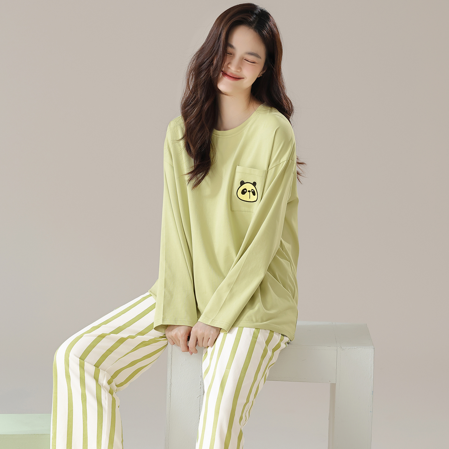 男女士休闲大码 圆领套装 可外穿家居服 纯棉长袖 芬腾情侣睡衣春秋季