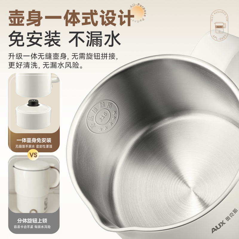 奥克斯便携烧水壶折叠旅行住酒店恒温宿舍不锈钢电热水壶小型新款