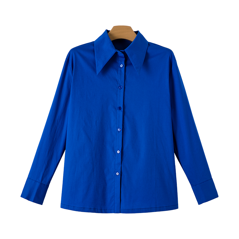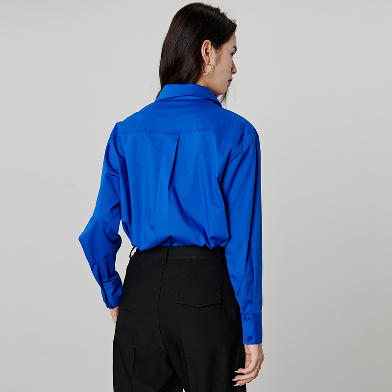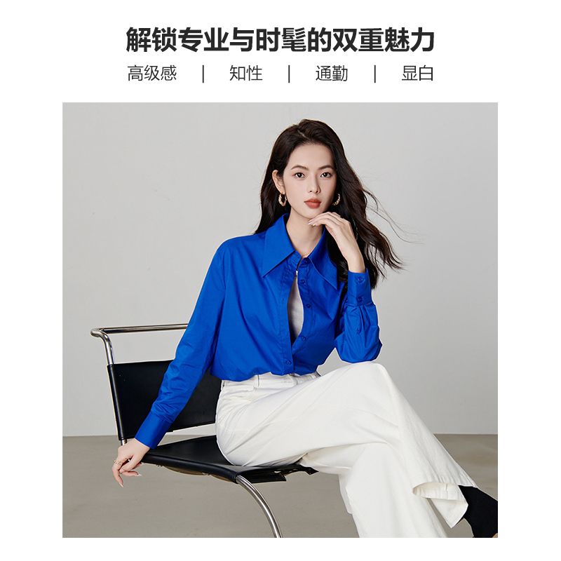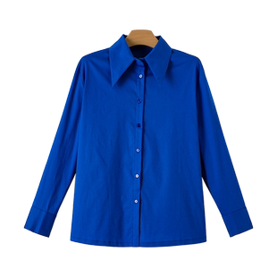 休闲翻领吸睛减龄韩系衬衫 显白蓝色衬衫 女 时尚 晚白2025年秋新款
