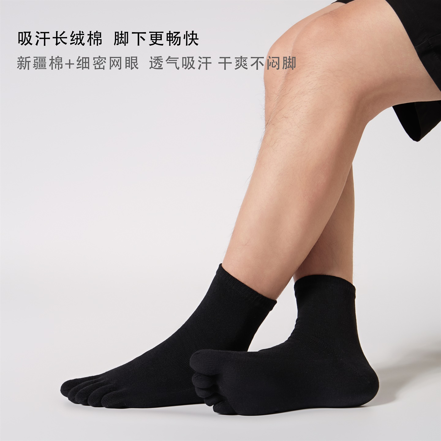 春秋冬季 精梳棉吸湿排汗中筒指头男袜夏分趾袜五指袜 五指袜子男士