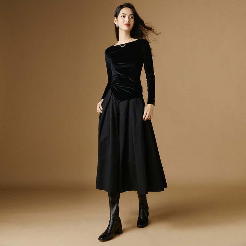 女 简约气质上衣百搭纯色一字领丝绒打底衫 晚白2025年秋冬新款 时尚