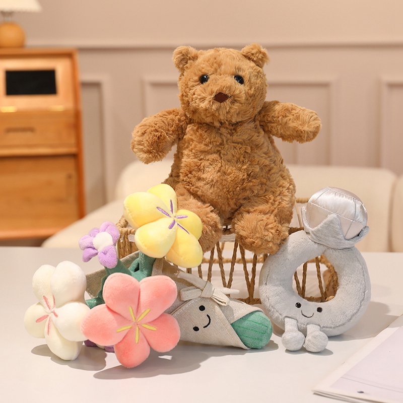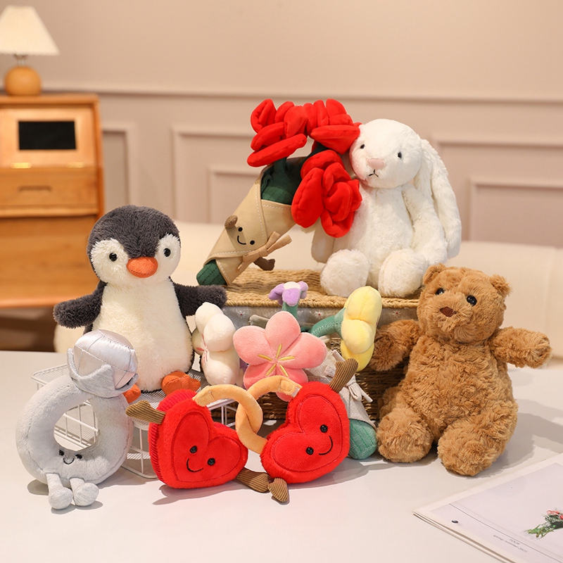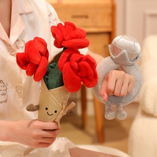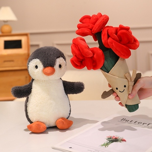 玫瑰花花束玩偶同心锁布娃娃企鹅毛绒玩具钻戒兔子玩偶巴塞罗那熊