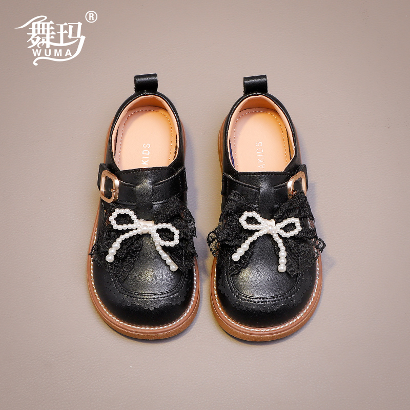小女孩网纱蝴蝶结黑色单皮鞋 舞玛女童鞋 秋季 2025新款 子儿童公主鞋