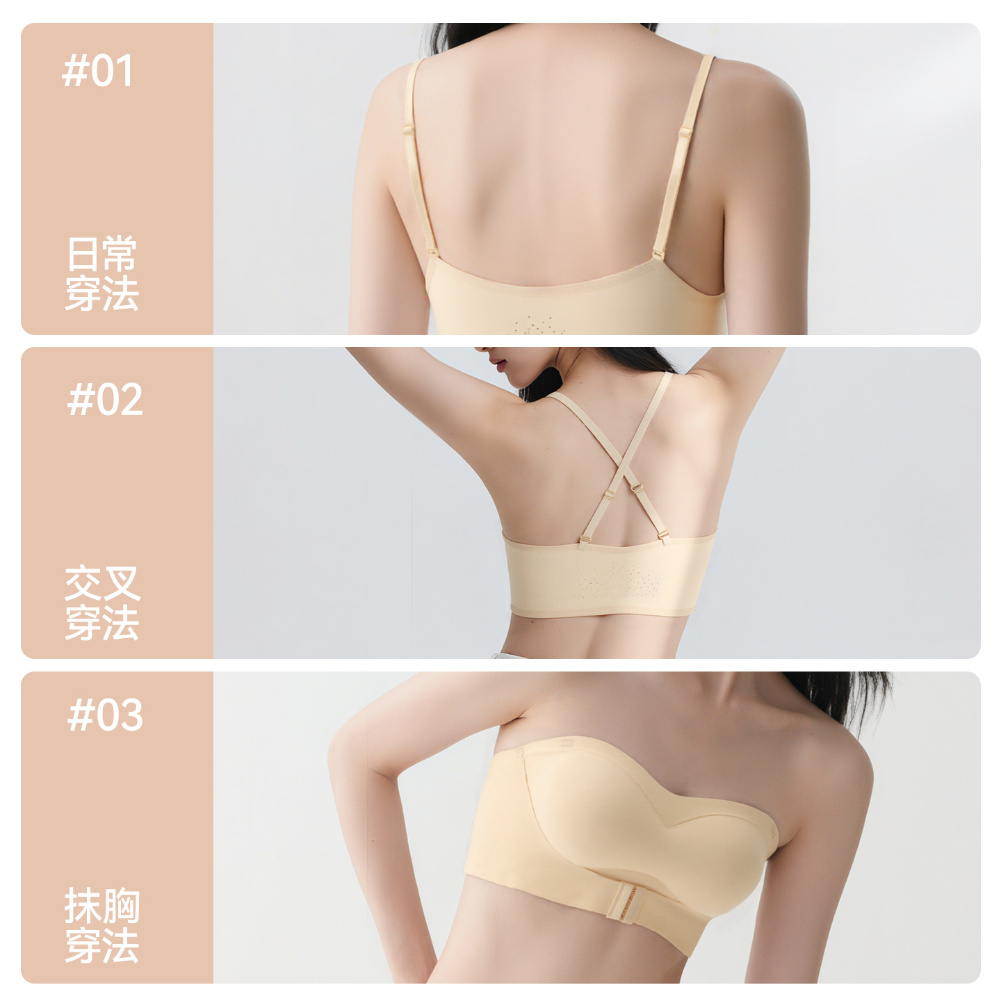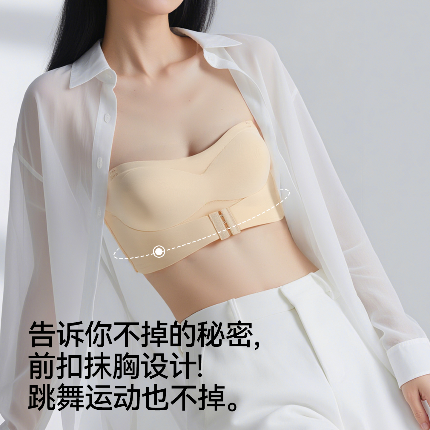 前扣无肩带内衣女防滑聚拢小胸无痕隐形抹胸防走光裹胸文胸不下滑