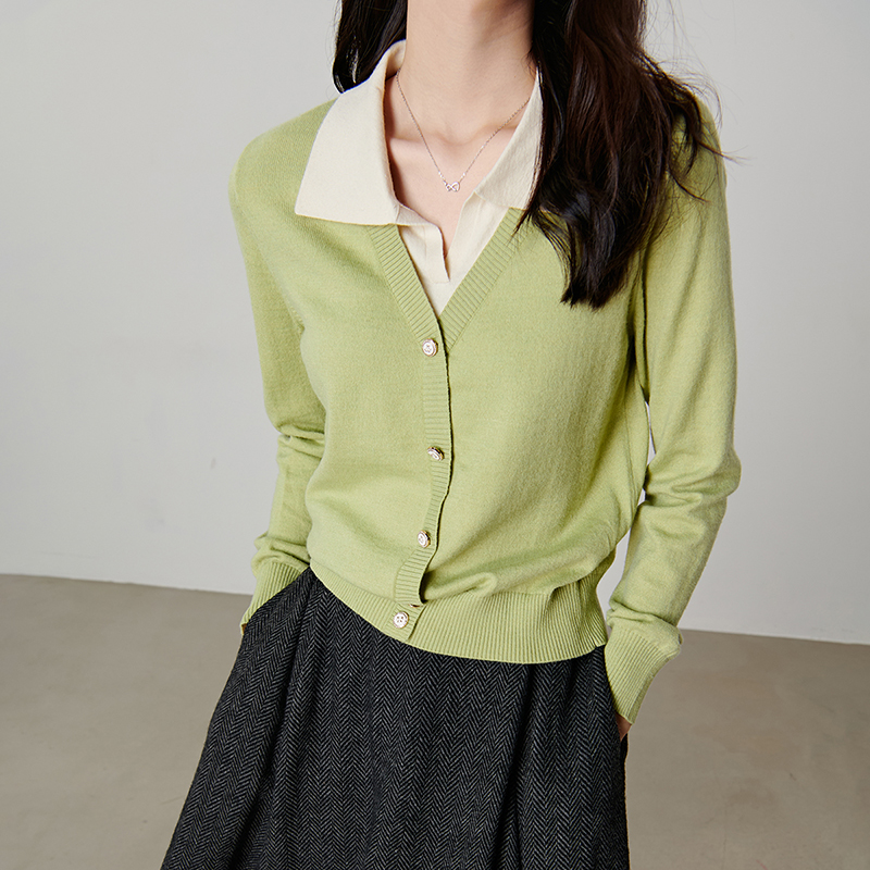 女 简约设计感毛衣气质假两件含羊毛针织衫 晚白2025年秋新款 时尚