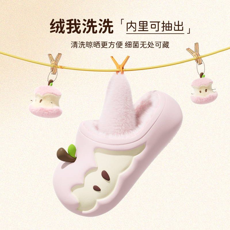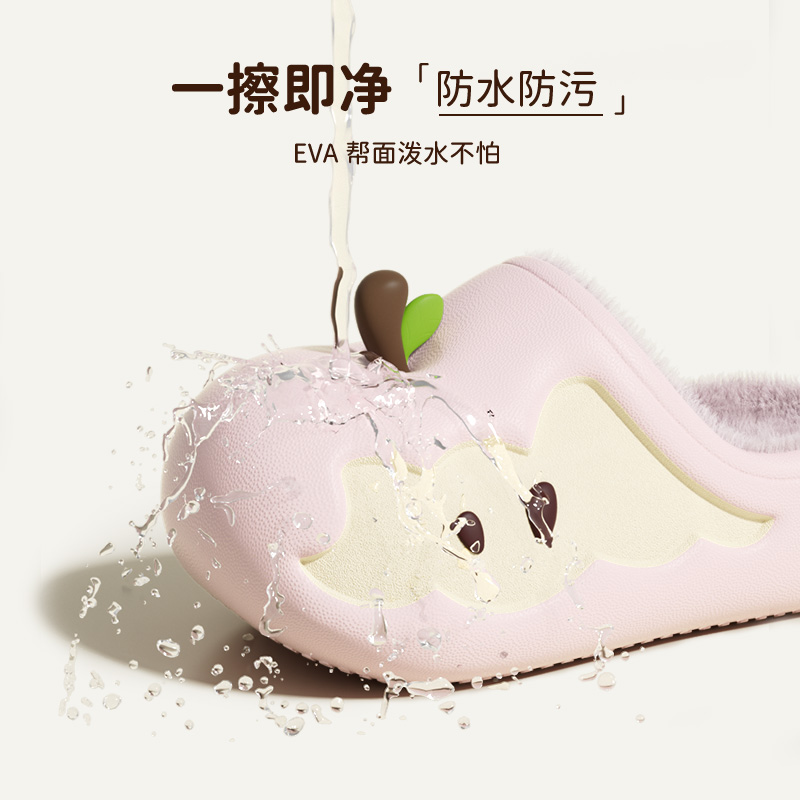 半包跟防水耐脏可抽洗情侣家居鞋 冬季 女款 chedoir猜岛苹果棉拖鞋