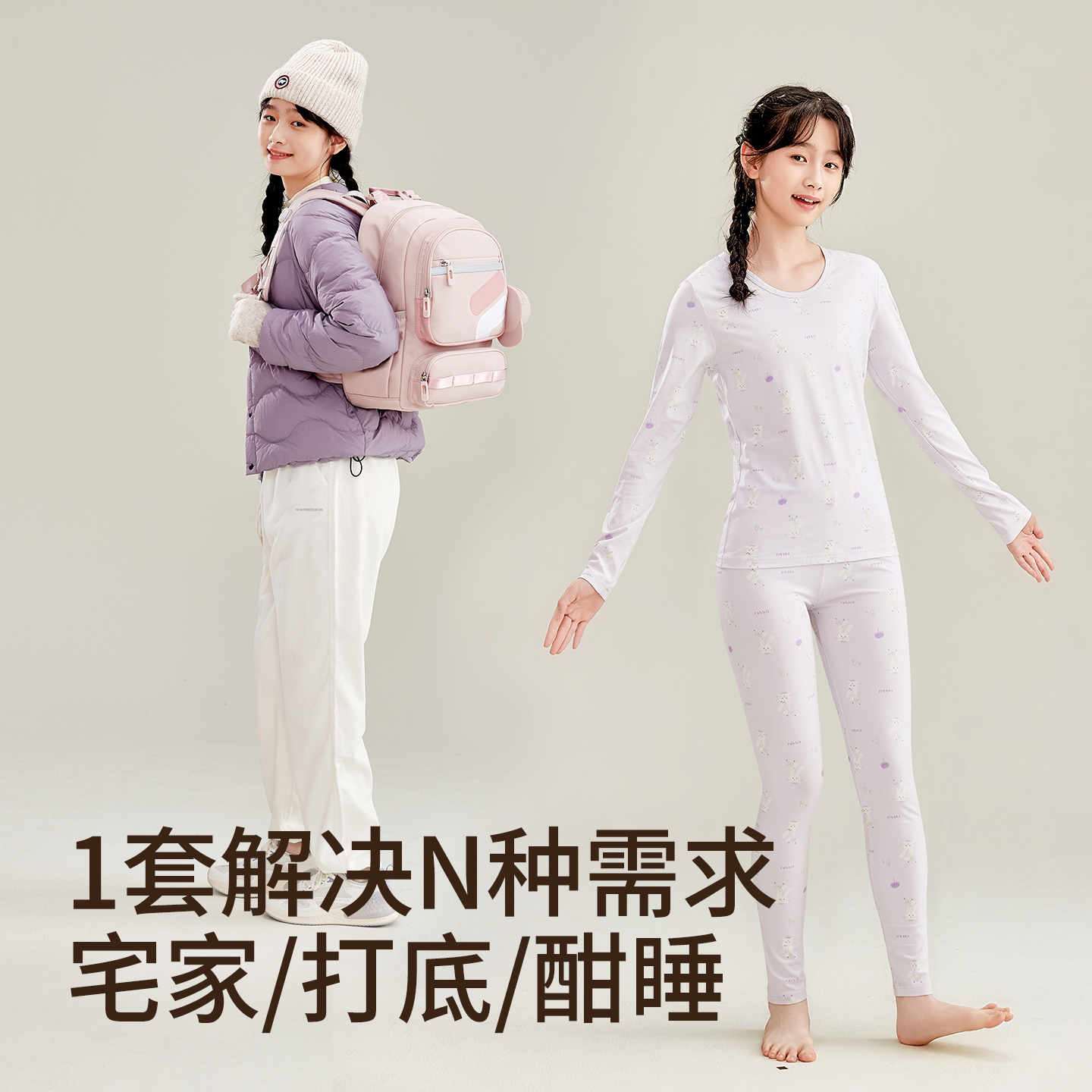 初中生少女秋衣秋裤 纯棉a类女大童儿童保暖内衣青少年高中生 套装