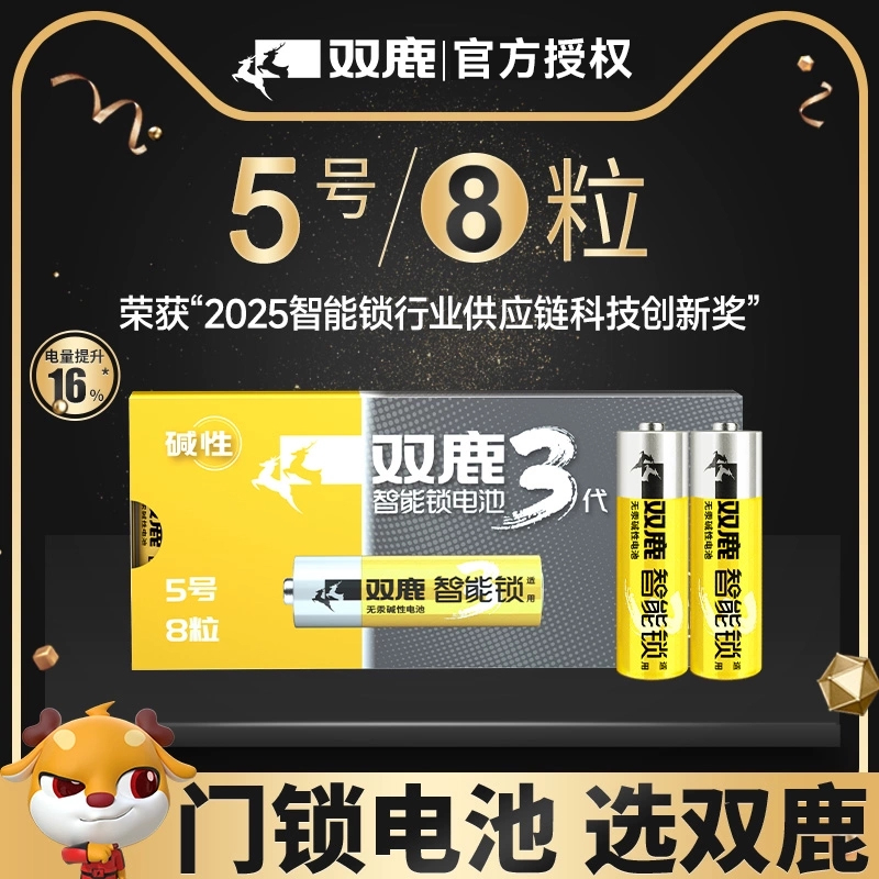 双鹿电子锁指纹锁适用电池密码 锁1.5V碱性5号电池防盗门智能门锁儿童玩具遥控器燃气表AA五号干电池不漏液