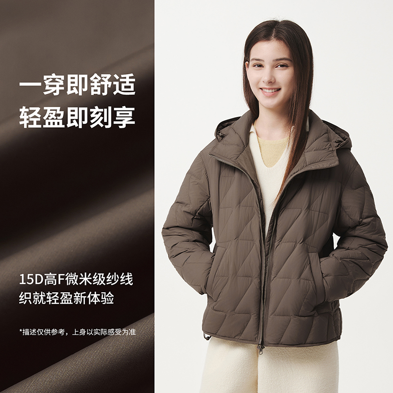 女轻薄羽绒服外套连帽保暖错格叠穿外套出游 波司登25新款 鹅绒