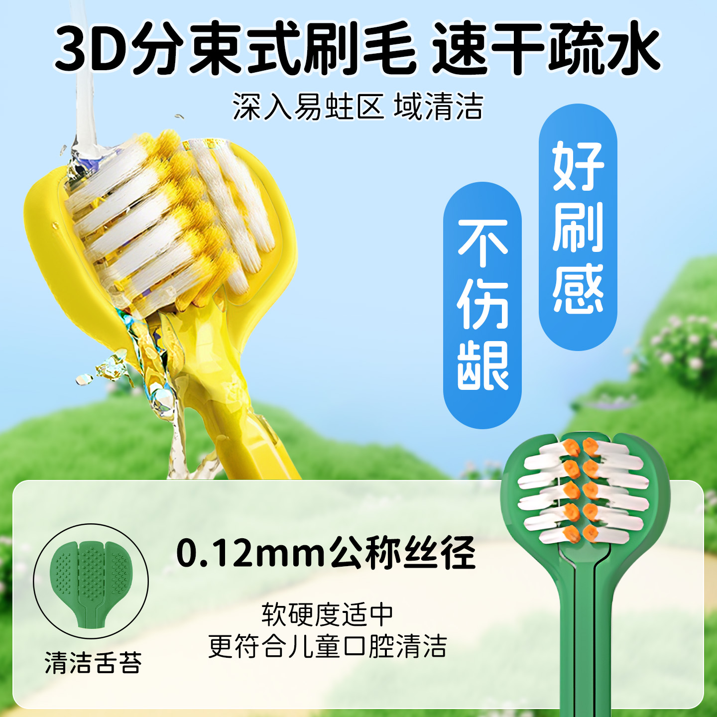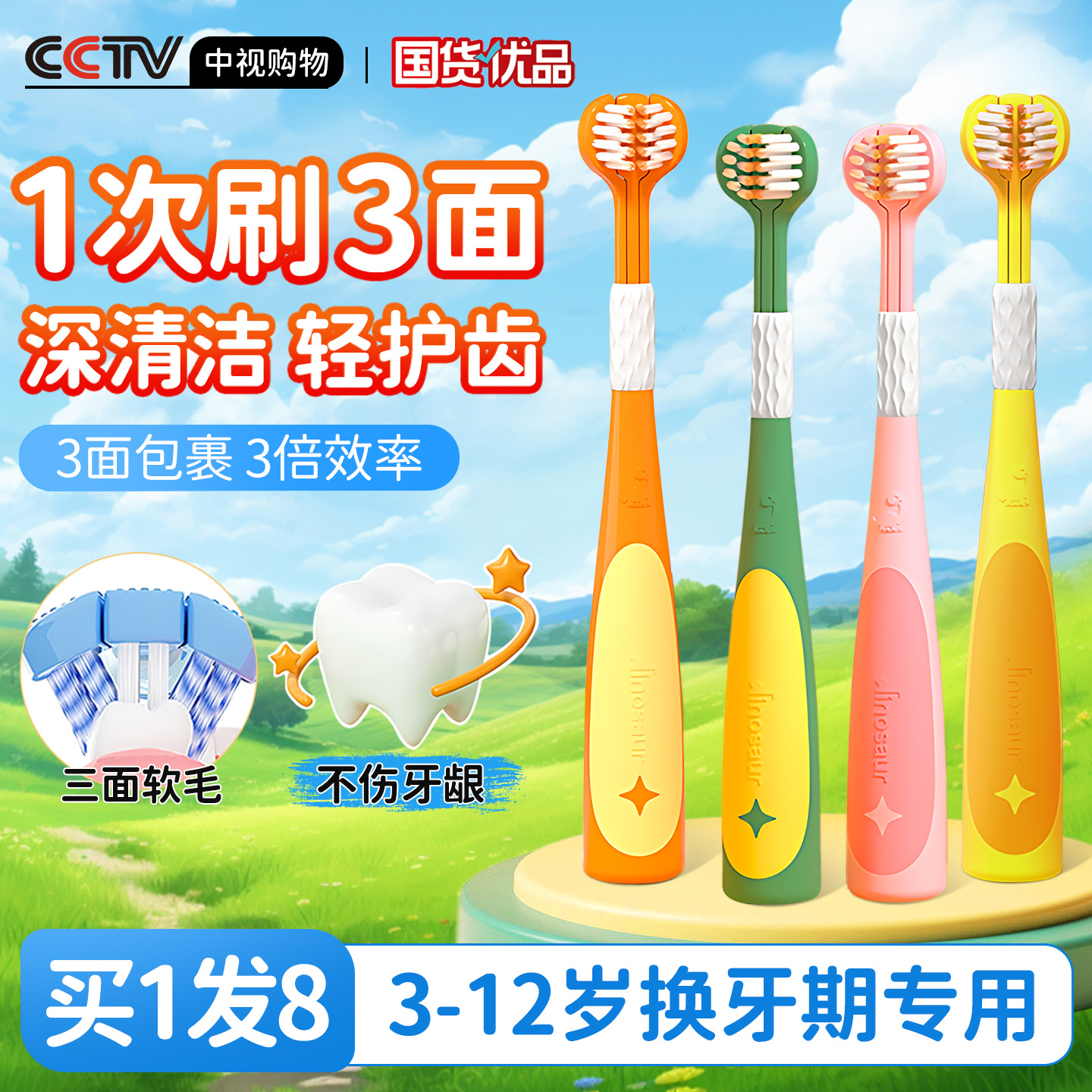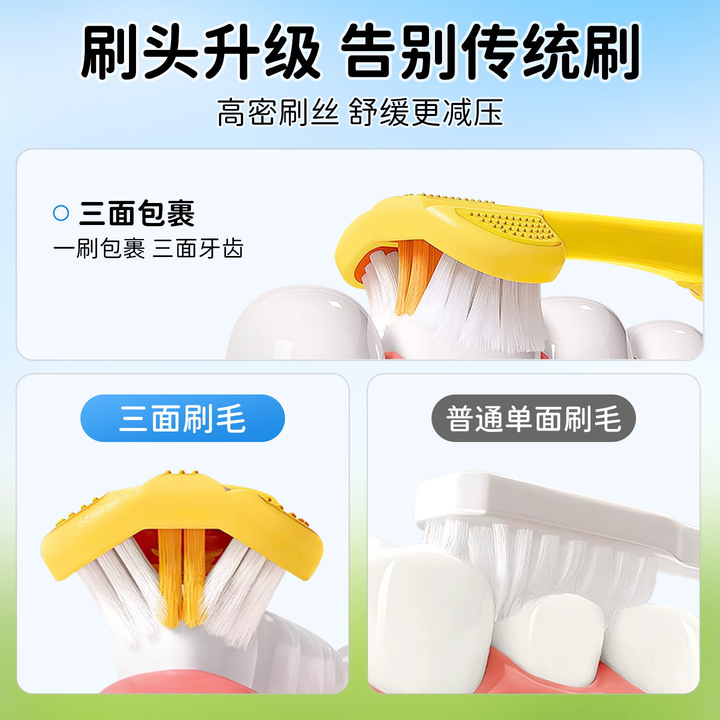 儿童软毛三面牙刷宝宝正畸u型清洁换牙期3 6到12岁以上小学生专用