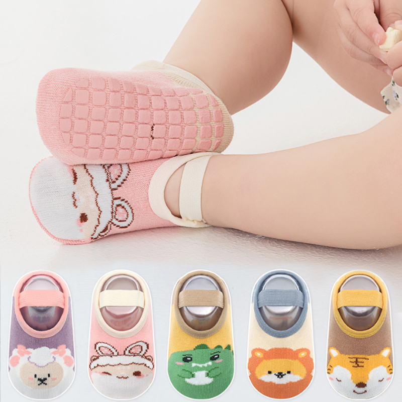 婴儿地板袜春秋薄款 卡通学步防滑袜 短袜绑带纯棉宝宝袜子夏季