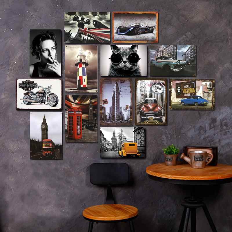 工业风覆古怀旧铁皮画 饰挂饰壁挂画 画车牌酒吧理髲店卧室墙上装
