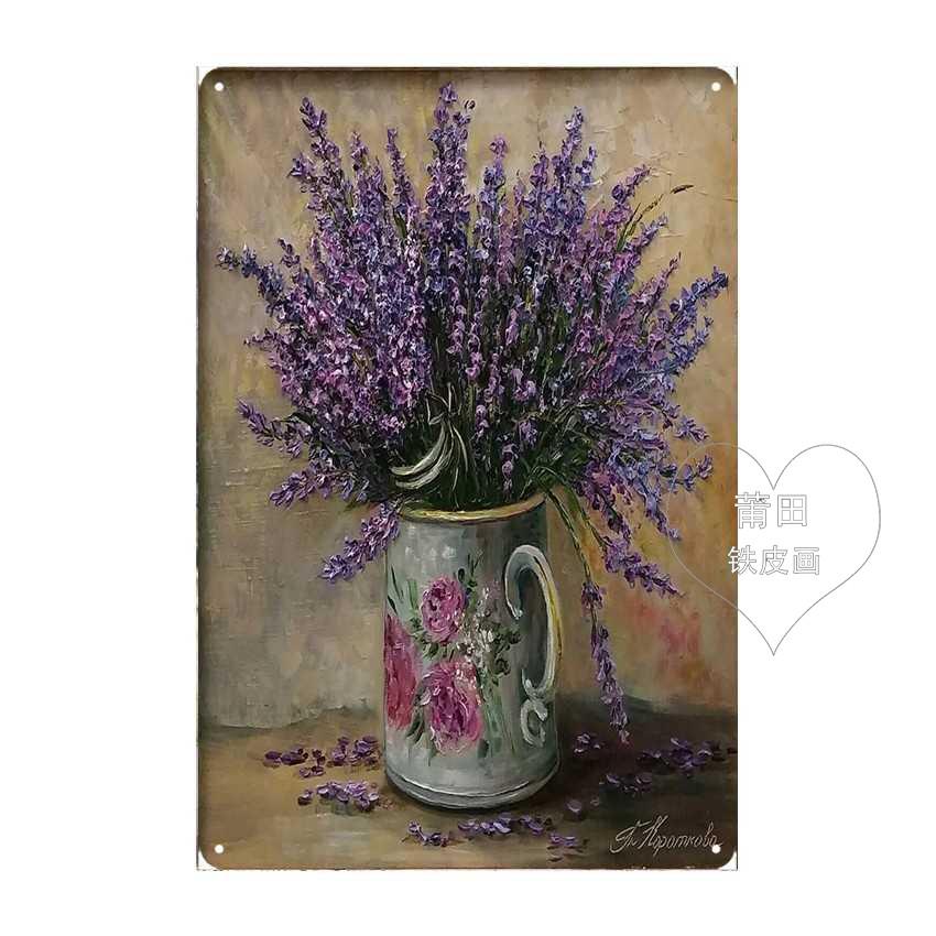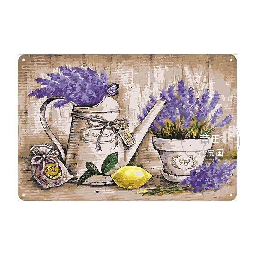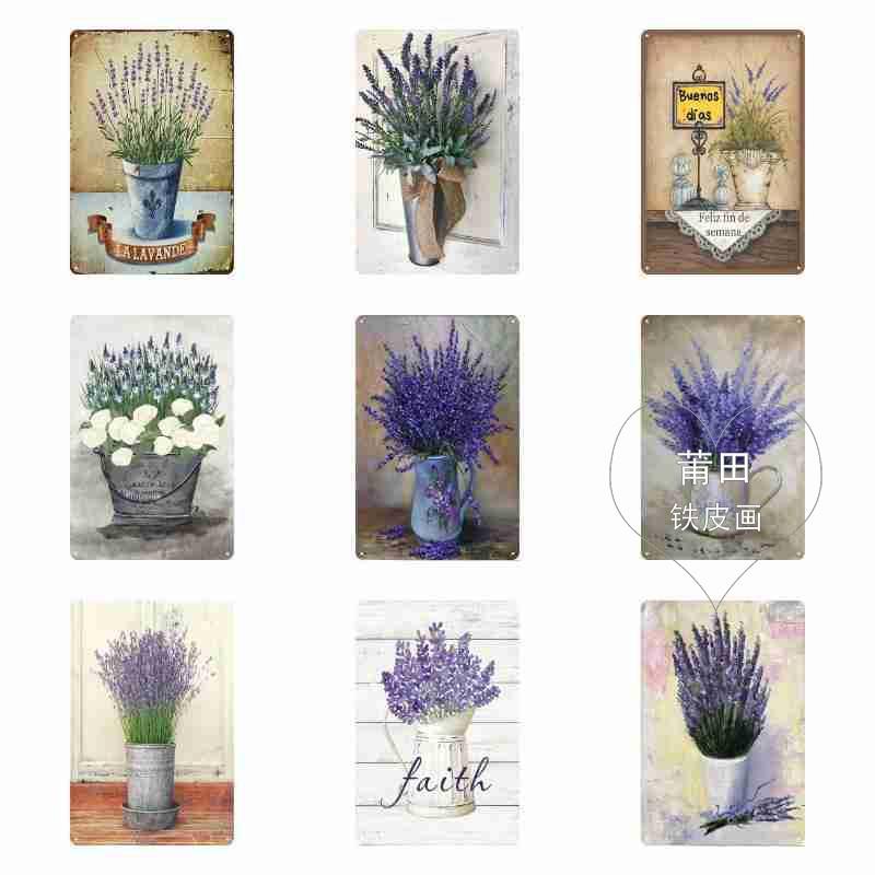 复古文艺薰衣草铁皮画花园咖啡奶茶阳台庭院居家墙面创意装 饰挂画