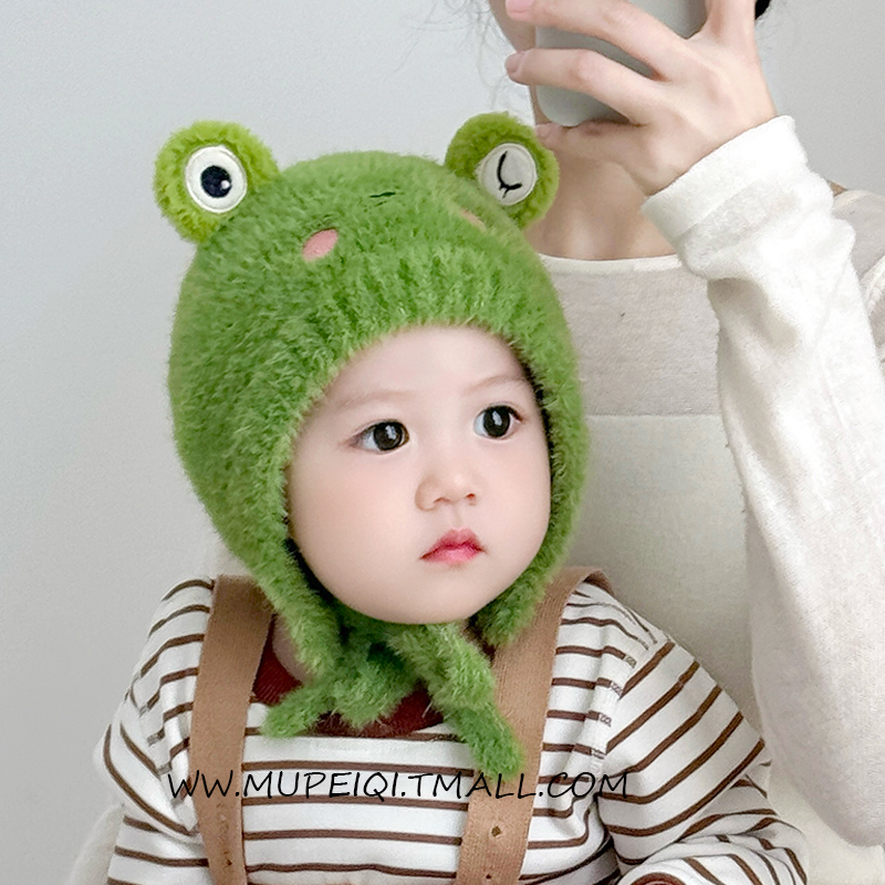 宝宝帽子秋冬季 男童女婴儿小鸭羊羔绒护耳帽防风保暖 毛线帽韩版