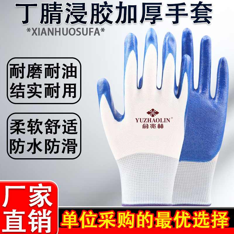 加厚耐磨劳保手套丁腈防滑防护工作工地手套浸胶维修正品 手指防水