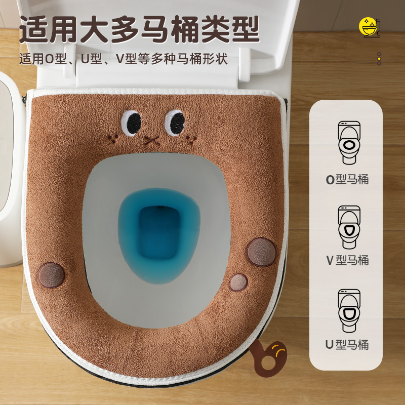通用 坐便套四季 马桶坐垫冬季 家用加绒垫座圈厕所垫子厚防水拉链款