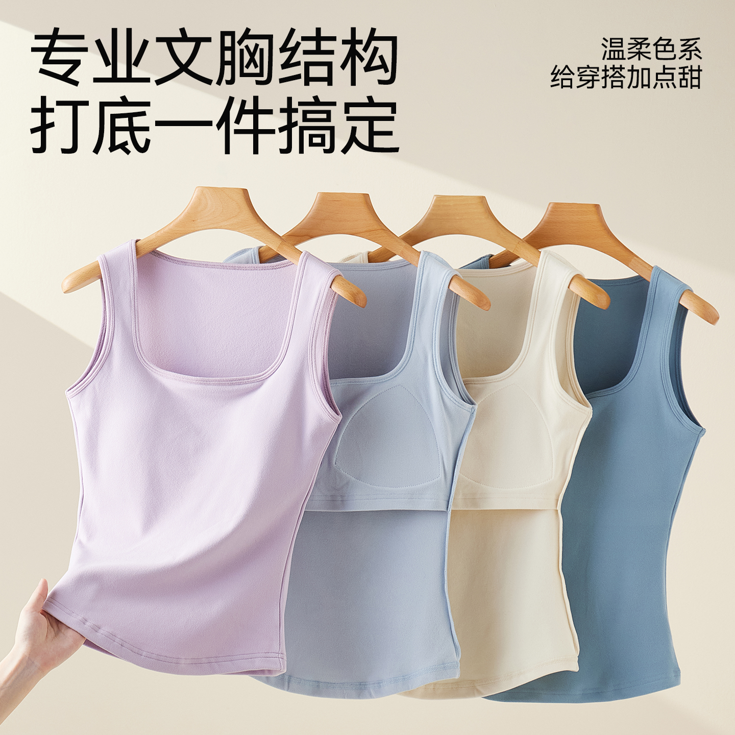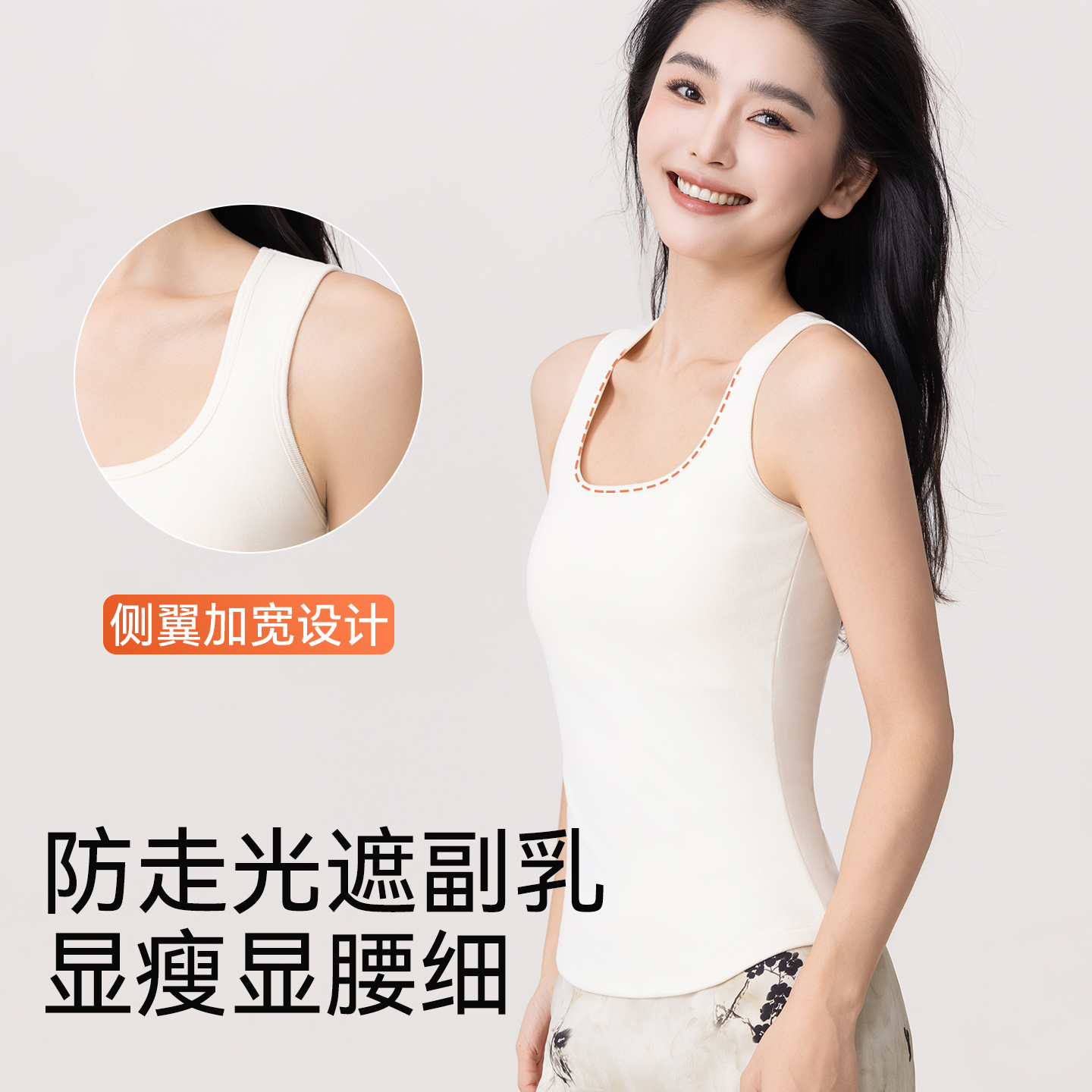带胸垫保暖背心女秋冬防走光方领内搭吊带季 上衣 加绒加厚百搭无袖
