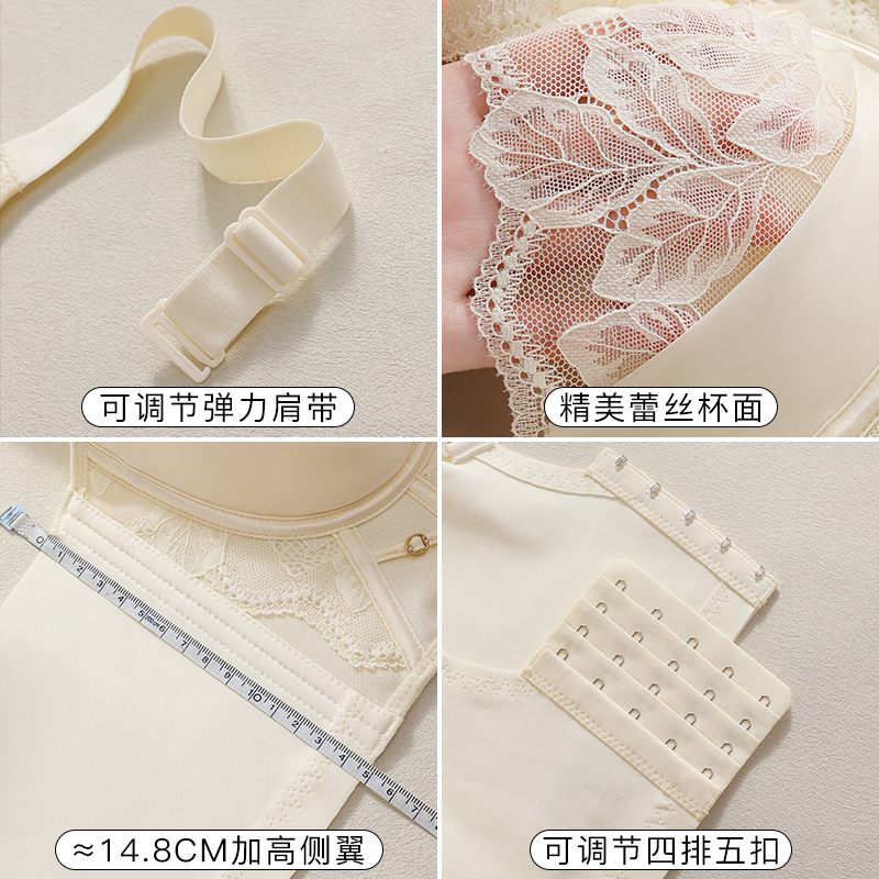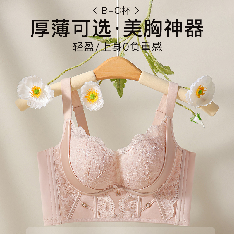 好奇蜜斯小胸聚拢内衣女薄显大无钢圈蕾丝文胸罩套装 防下垂夏 法式