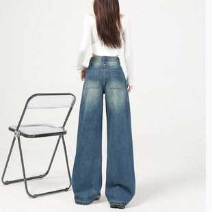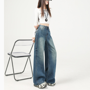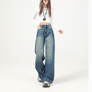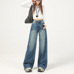 扎花设计感直筒休闲裤 宽松显瘦垂感美式 女春秋2025新款 阔腿牛仔裤