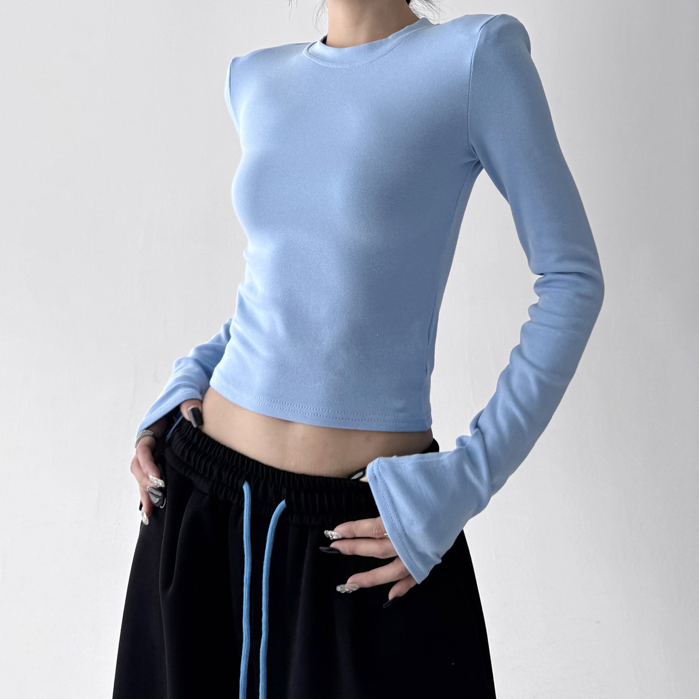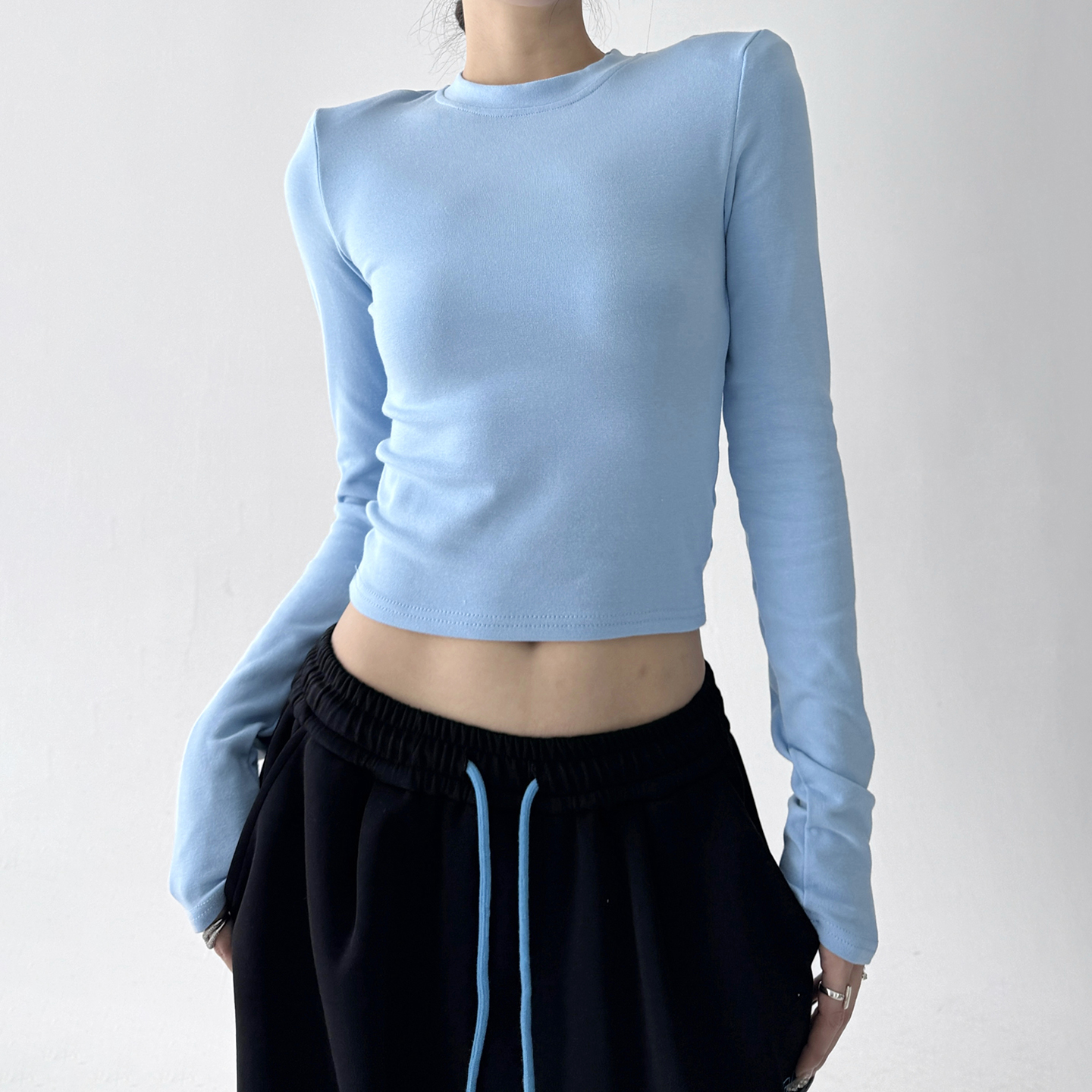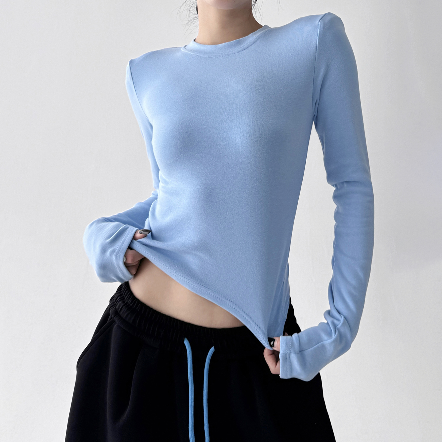 修身 今年流行长袖 新款 女2025秋季 高个学生显瘦百搭T恤上衣 打底衫