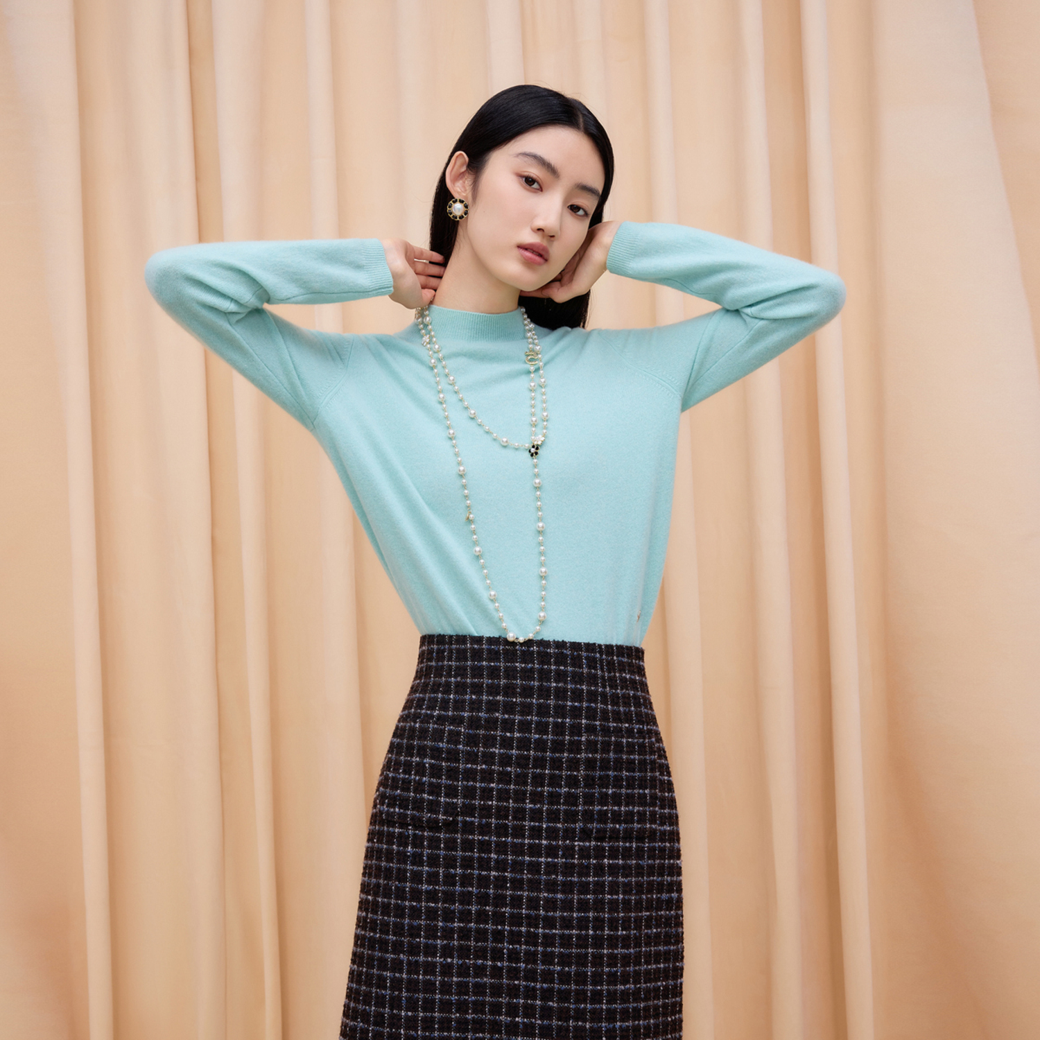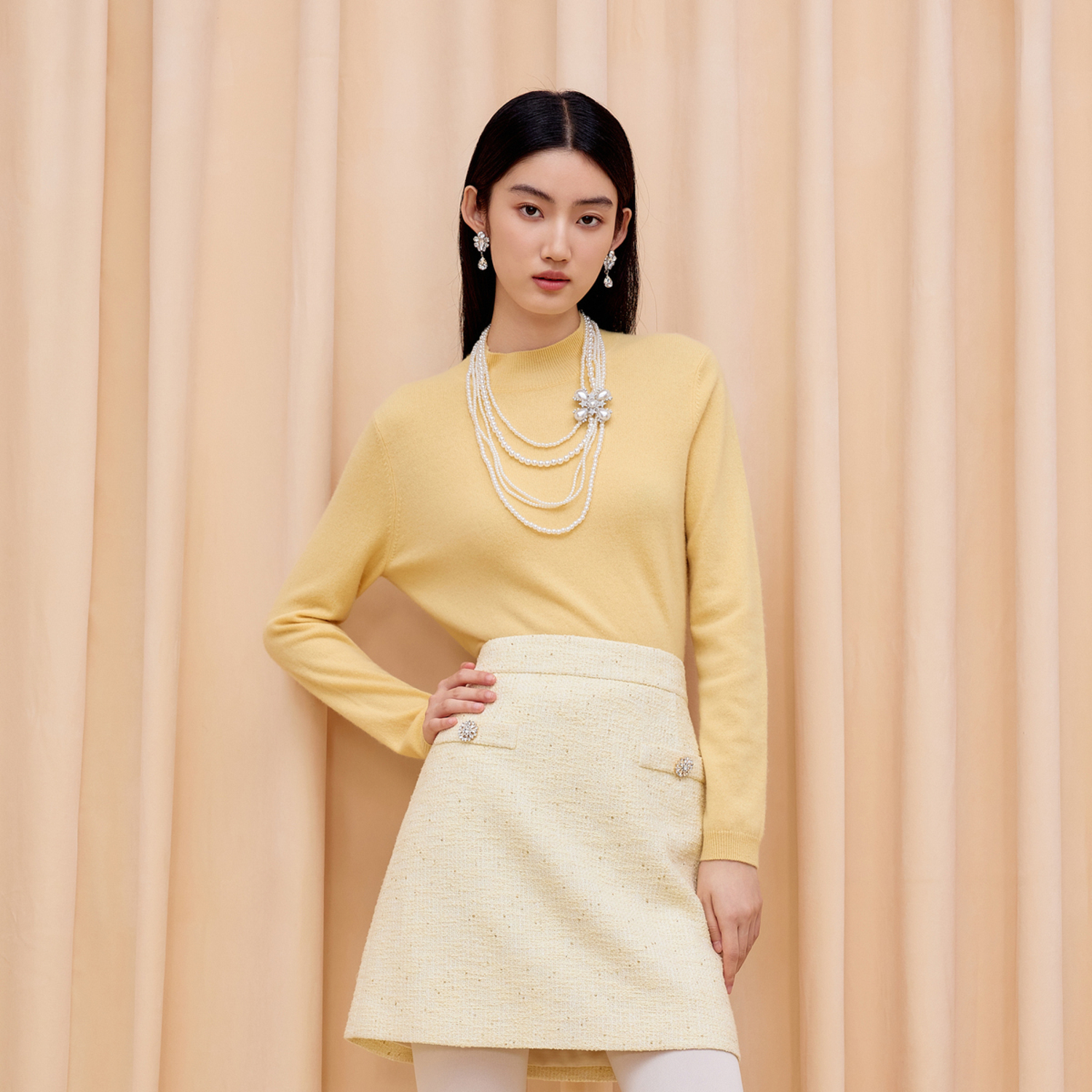 宽松纯色女毛衫 朗姿集团LIME莱茵针织半高领套头羊绒衫 25秋冬新款