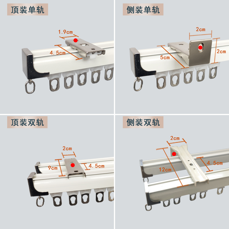 铝合金静音窗帘轨道滑道窗帘杆单双弯轨顶侧装 送轴承轮配件可整根