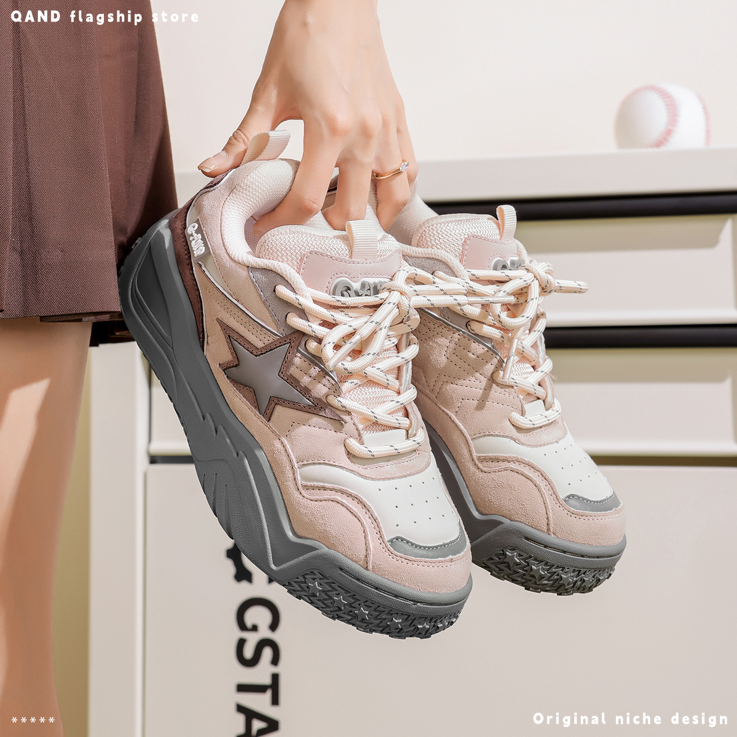 双11预售 增高休闲板鞋 百丽女鞋 带厚底德训鞋 预 子流心曲奇双鞋