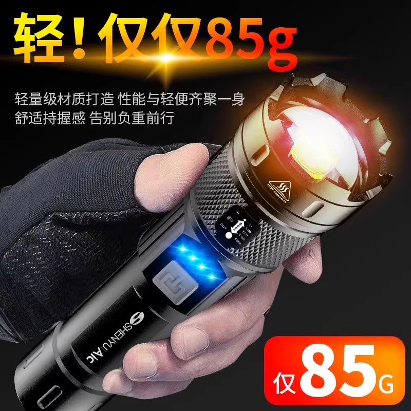 公牛适用手电筒强光可充电小型便携户外超亮远射耐家用应急LED灯