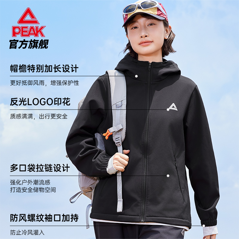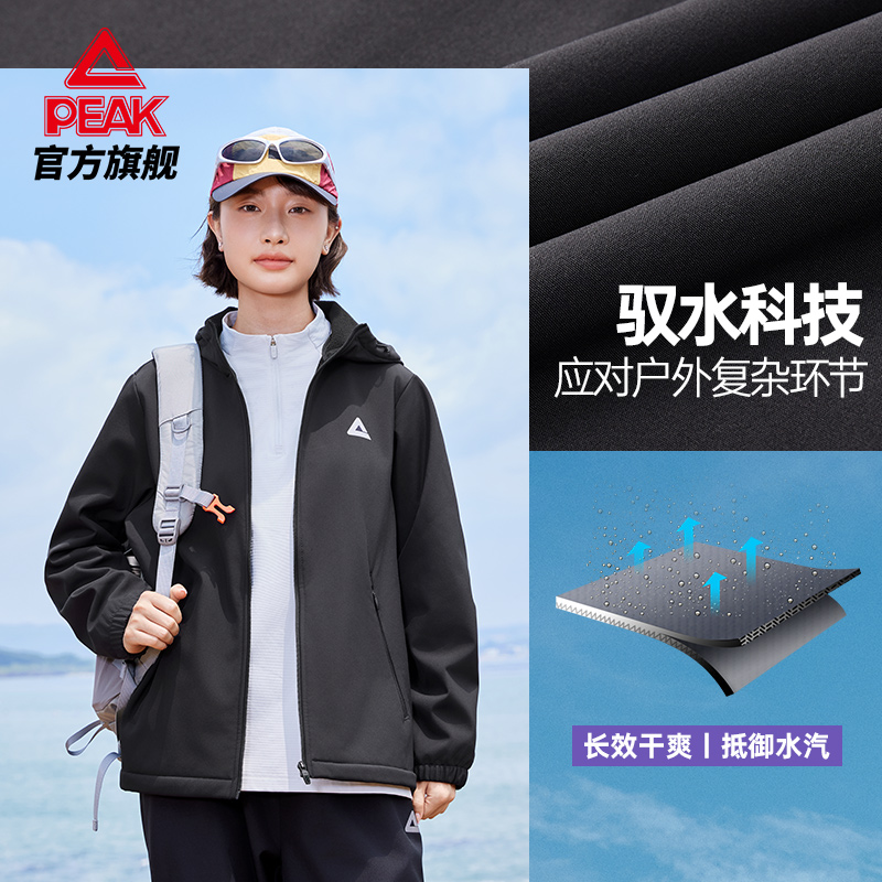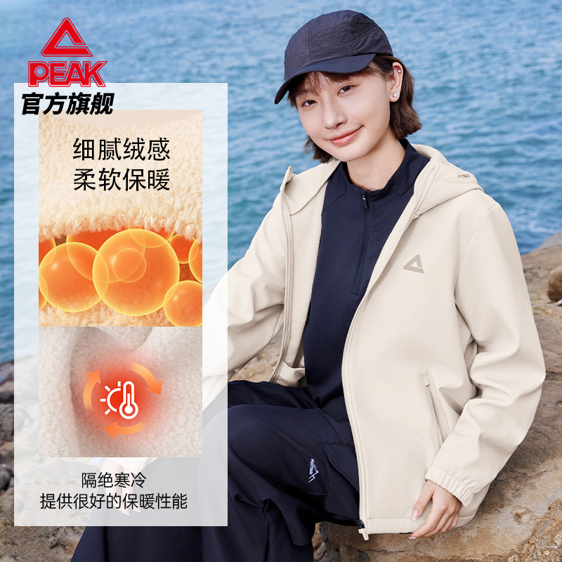 匹克防泼水外套梭织加绒冲锋防风衣女秋新品 户外休闲运动跑步夹克