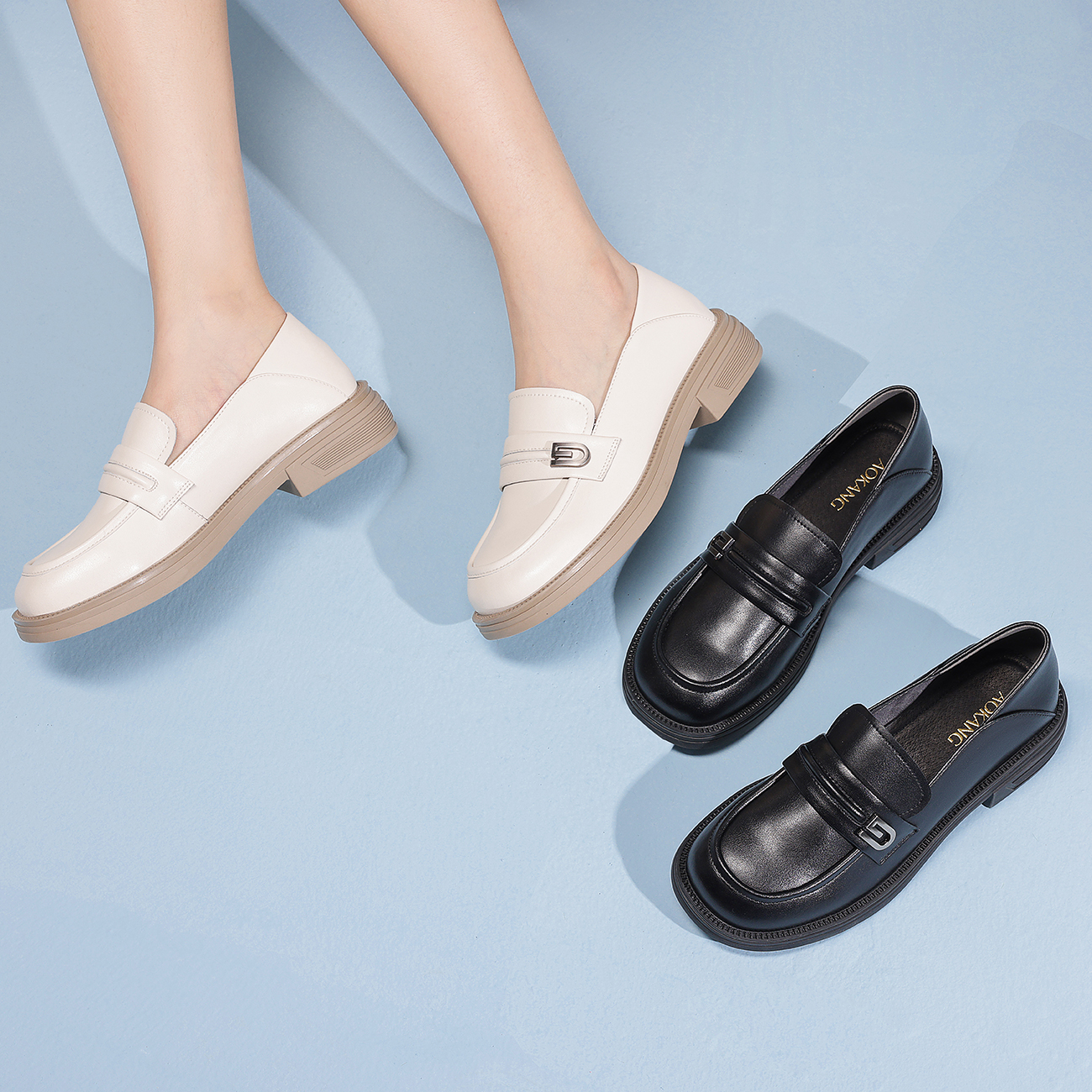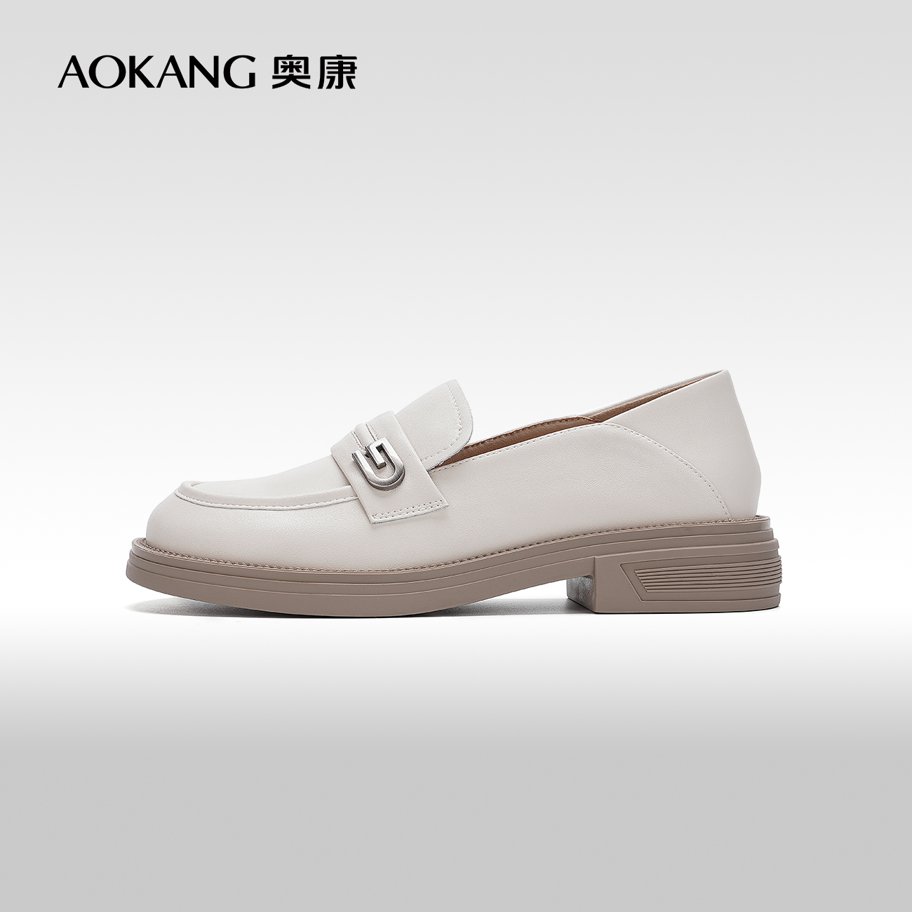 豆豆鞋 奥康 黑色英伦风厚底乐福鞋 春秋季 女鞋