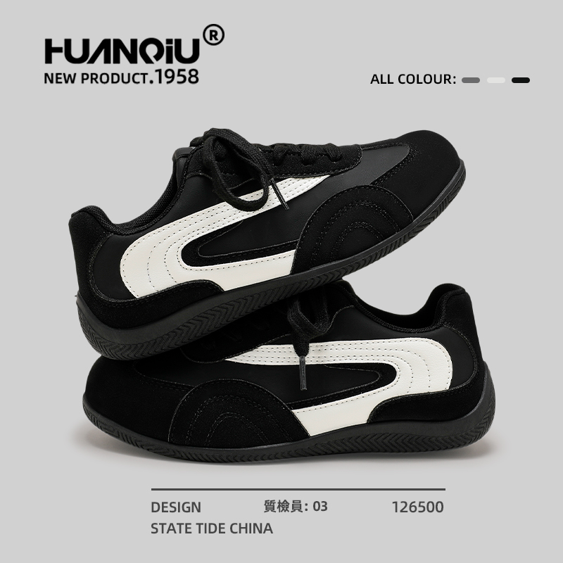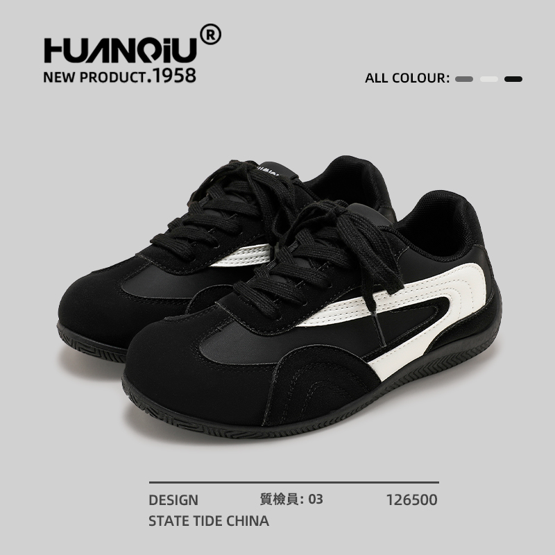 女款 轻便休闲板鞋 秋季 百搭通勤小黑鞋 2025新款 环球厚底黑色德训鞋